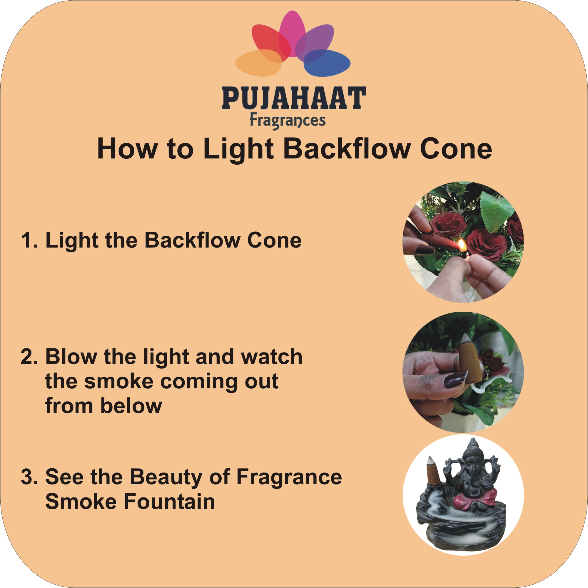 Package Contents: Each pack includes Premium Backflow Incense Cones, ensuring an extended period of aromatic indulgence